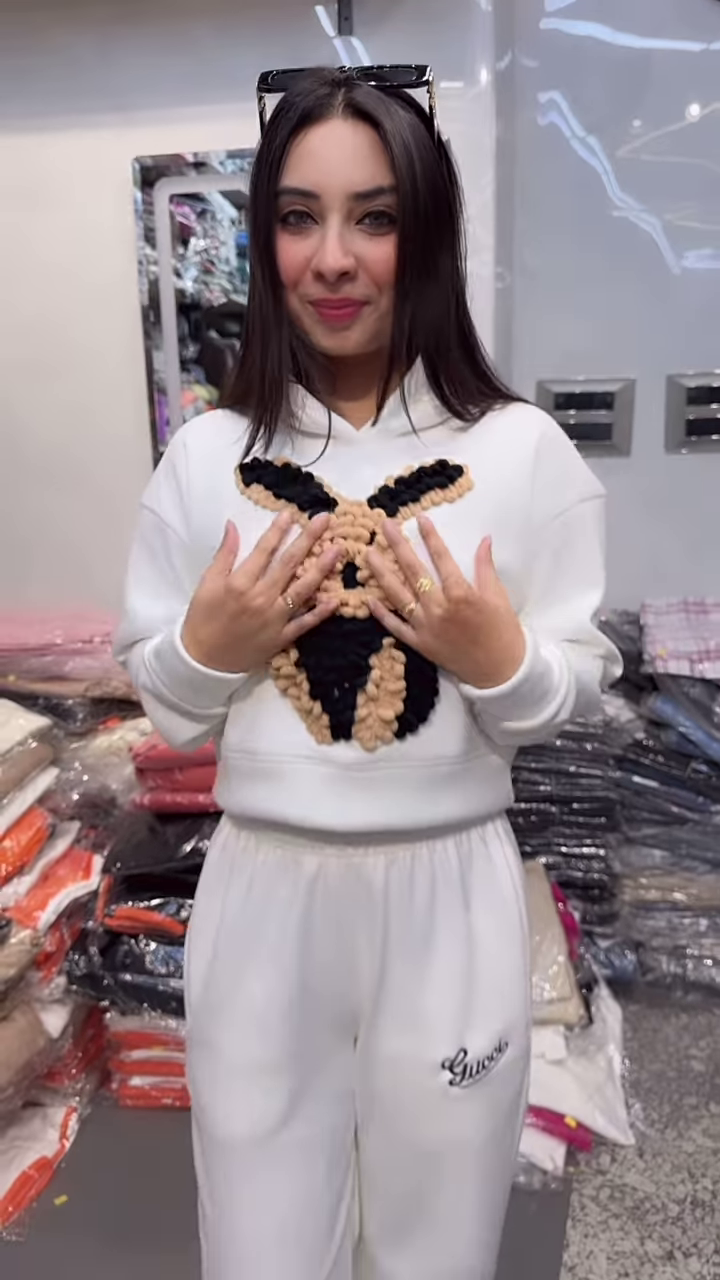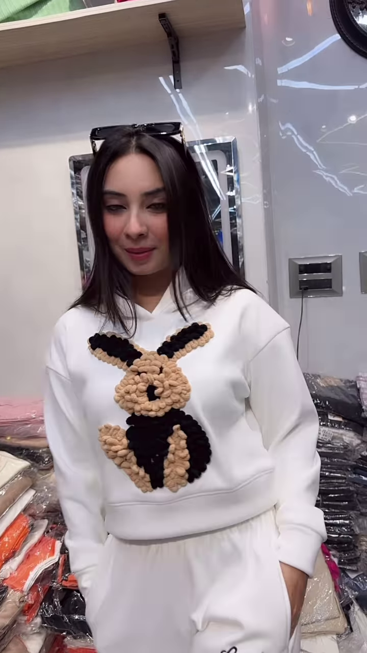 From cozy coffee dates to casual mall strolls, this set keeps you looking effortlessly cute and coordinated. The bunny motif adds a touch of whimsy, while the clean silhouette ensures it stays fashion-forward. Pair with chunky sneakers or open-toe slides for a laid-back vibe. ☕️🛍