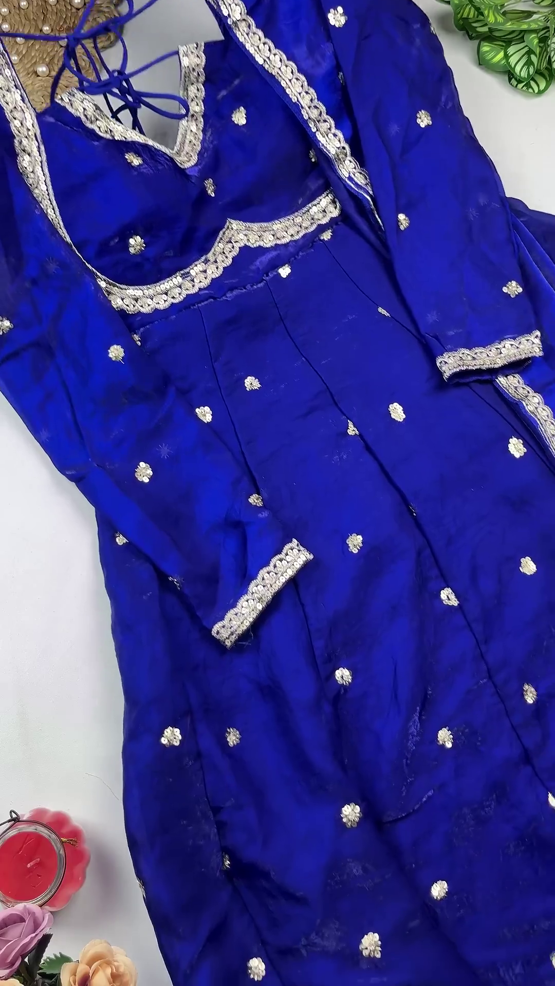 Elegant V-Neckline: Features a deep V-neckline meticulously framed with detailed threadwork and shimmering sequins.