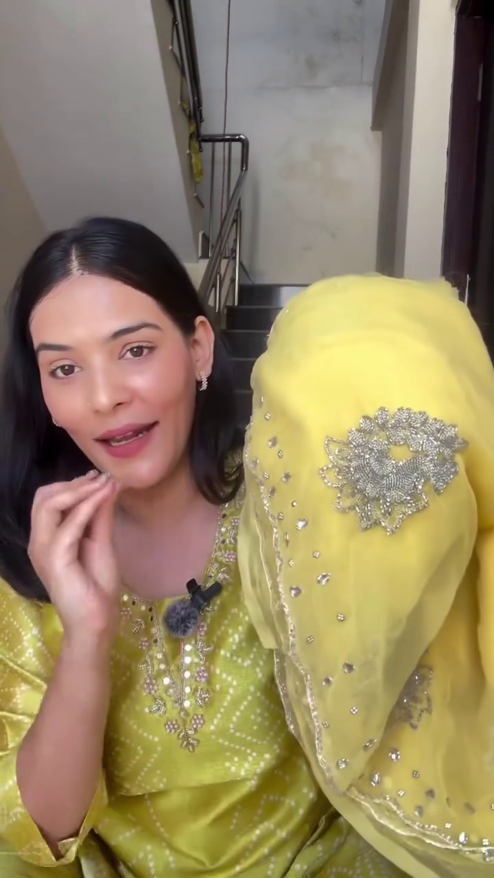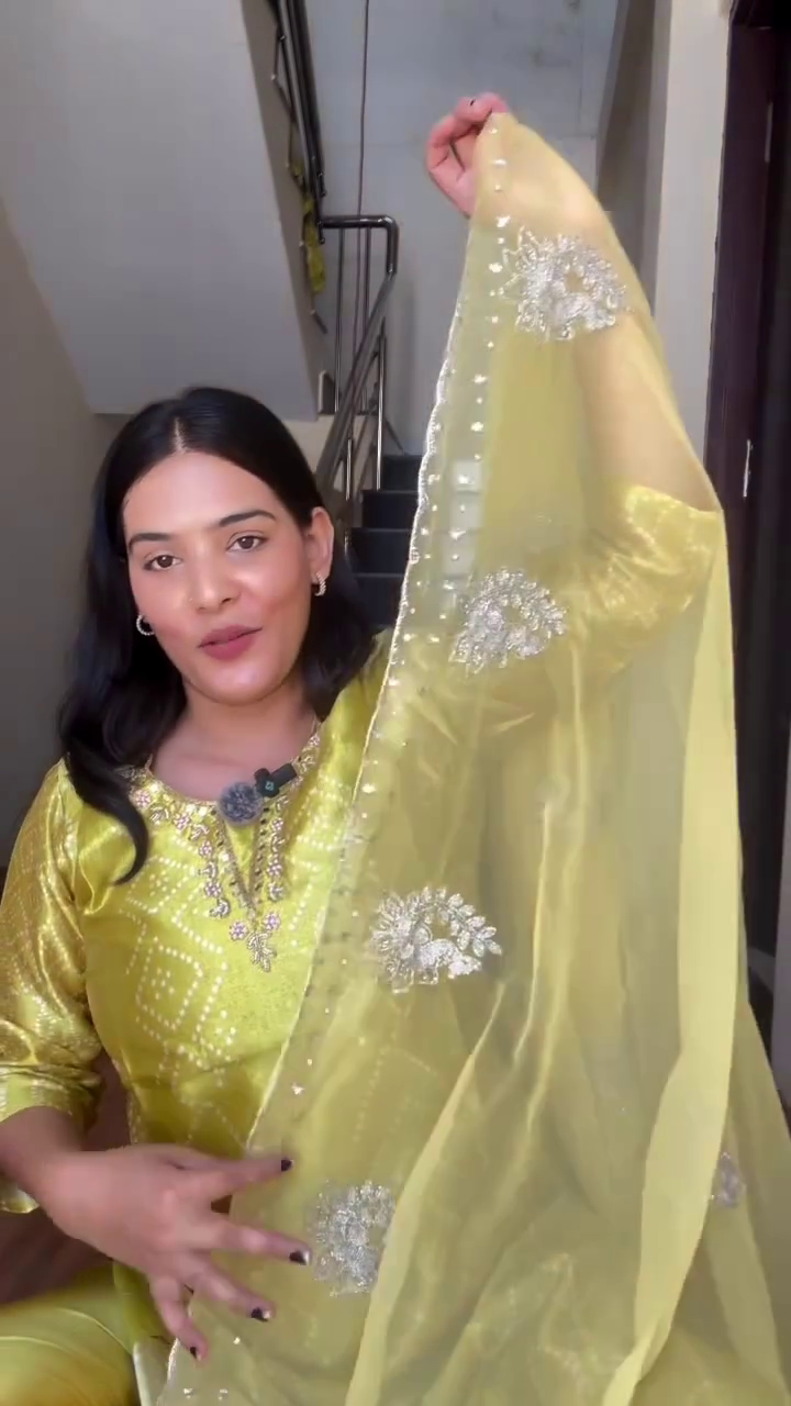Radiate joy in this vibrant lime-yellow ethnic ensemble, featuring traditional patterns and exquisite artisanal detailing. This “Ready to Wear” set is a perfect choice for Haldi ceremonies, daytime festivities, and celebratory family gatherings.