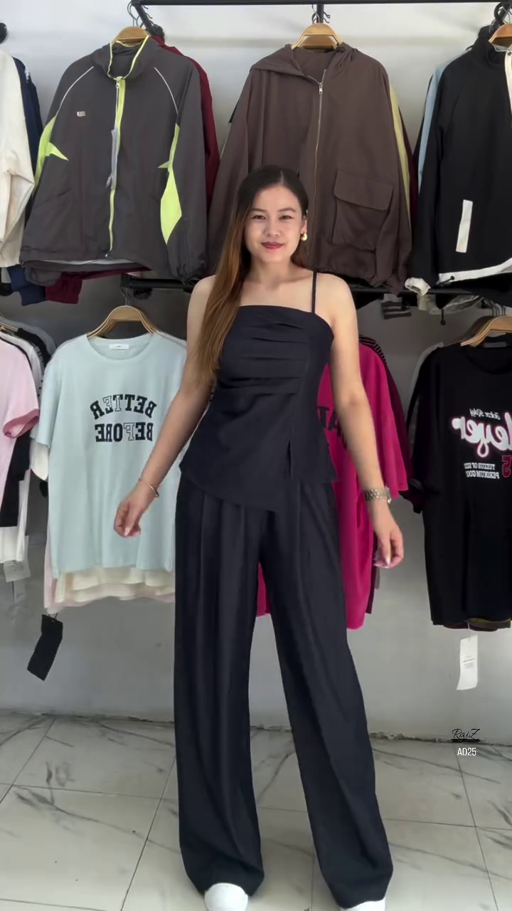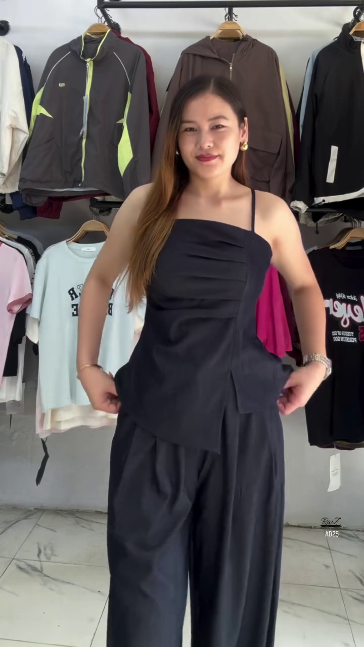 Available in a timeless solid black shade, it offers endless styling possibilities while maintaining an effortlessly polished appearance. Whether you’re attending brunch, a casual office meeting, or an evening gathering, this set ensures you look refined and put together.