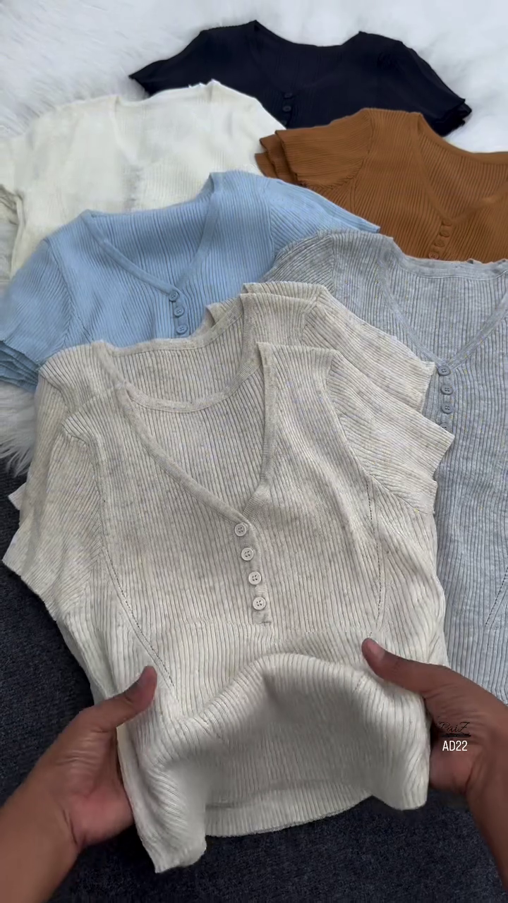 Featuring a V-neckline complemented by a classic button-down front, this top creates a subtly elegant silhouette that flatters all body types. The short sleeves provide ease and comfort, making it a practical option for warm-weather wear or layering under jackets and cardigans in cooler seasons. Available in a range of versatile colors—black, white, mustard, blue, grey, and beige—it allows endless styling possibilities to suit different moods and occasions.